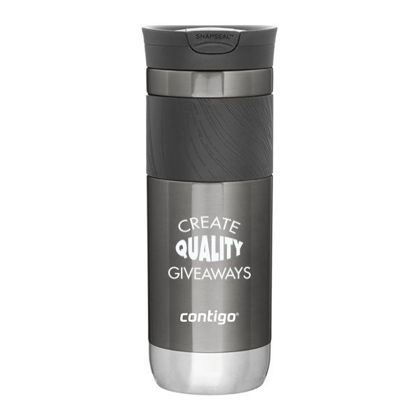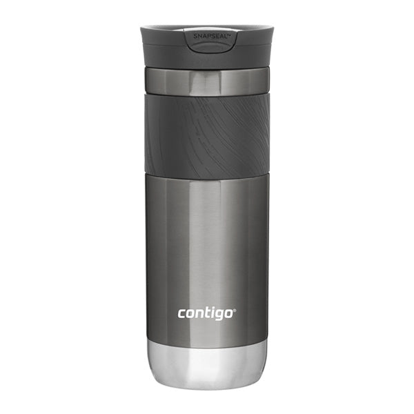 - SNAPSEAL threaded lid, silicone grip, and stainless steel base