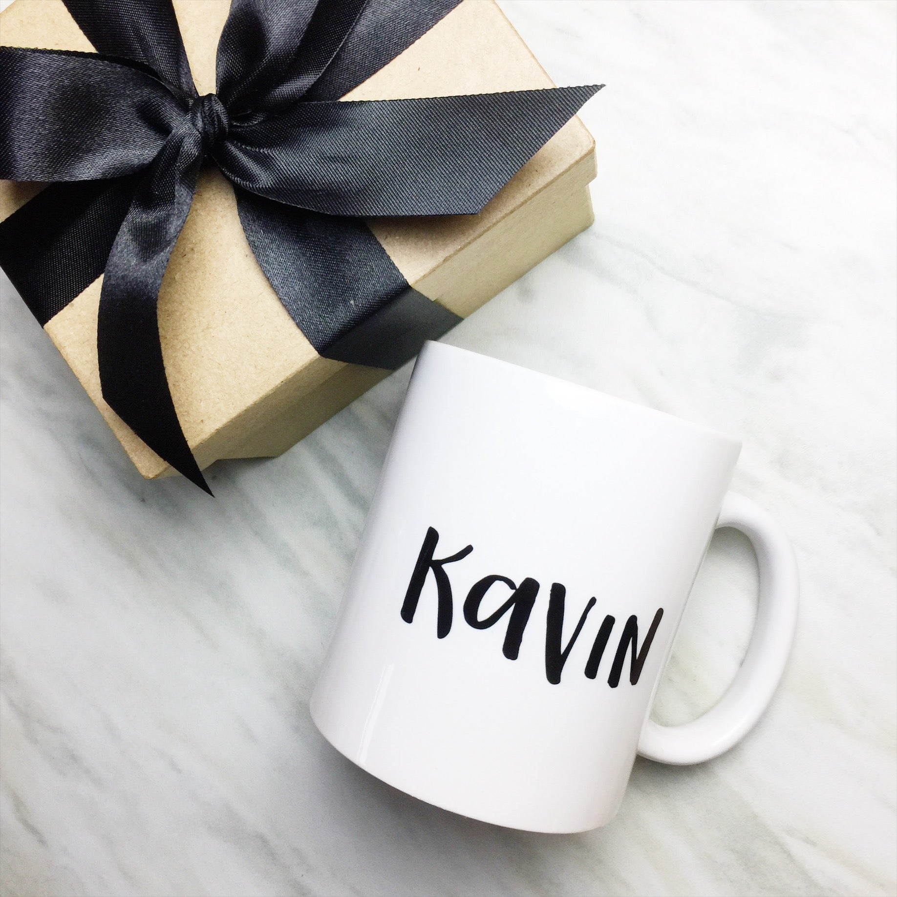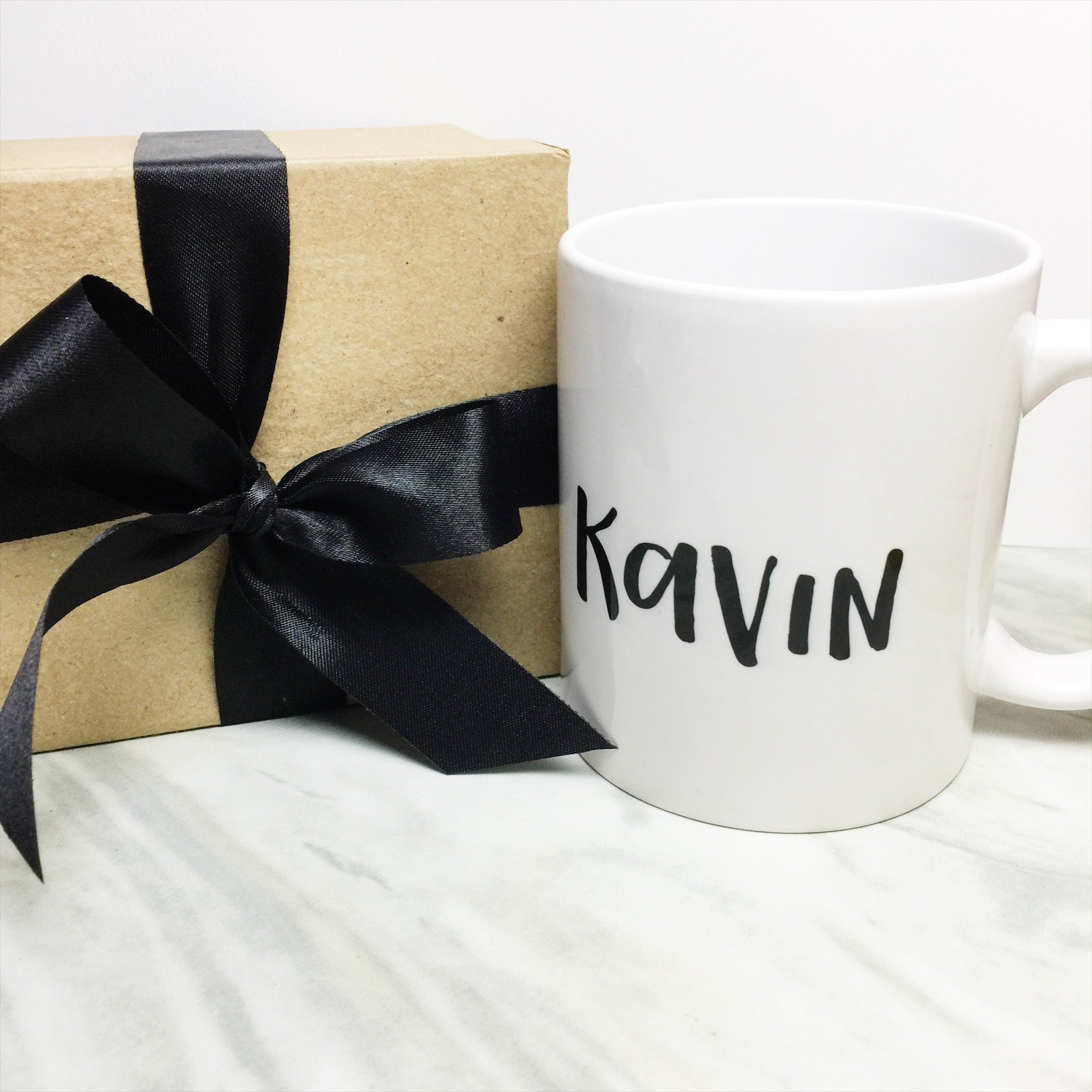 Make it your own! Your name on a white mug in a font of your choice! Make it extra special with a gift box and ribbon, perfect for gift giving!