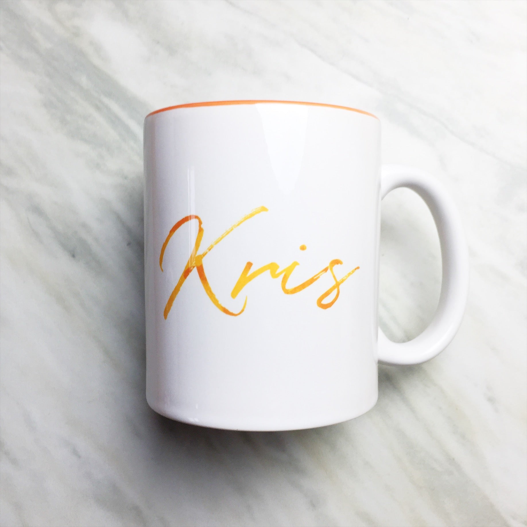Make it your own! Your name on an orange inner-color mug in a font of your choice. Perfect gift for everyday use or to give as gifts for any occasion!