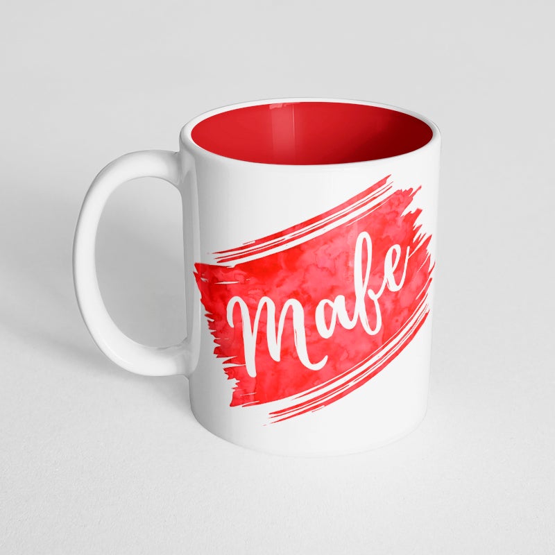 Your name in a font of your choice on a red watercolor design on a red innercolor mug.