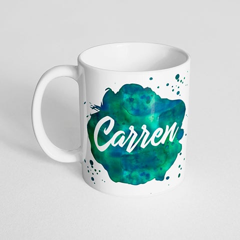 Your Name with a Watercolor Splatter Design on a Classic White Mug- Version 3